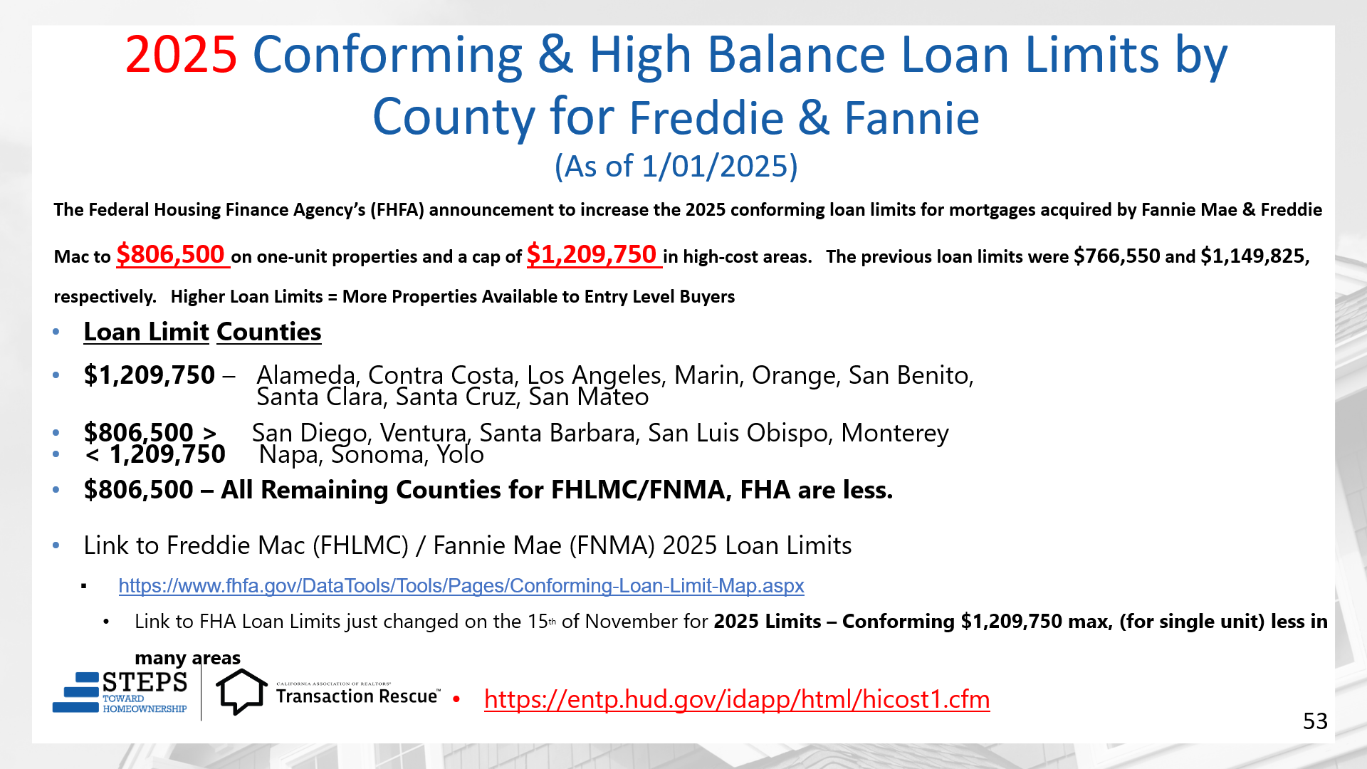• 2025 Changes, Loan Programs & Limits